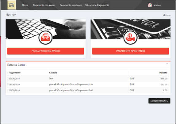 - Visualizzazione estratto conto dei pagamenti effettuati attraverso il Portale Debitore e dei pagamenti effettuati direttamente attraverso le infrastrutture messe a disposizione dai PSP.